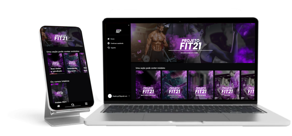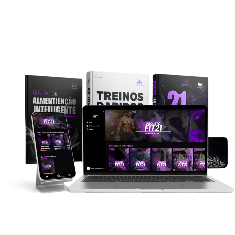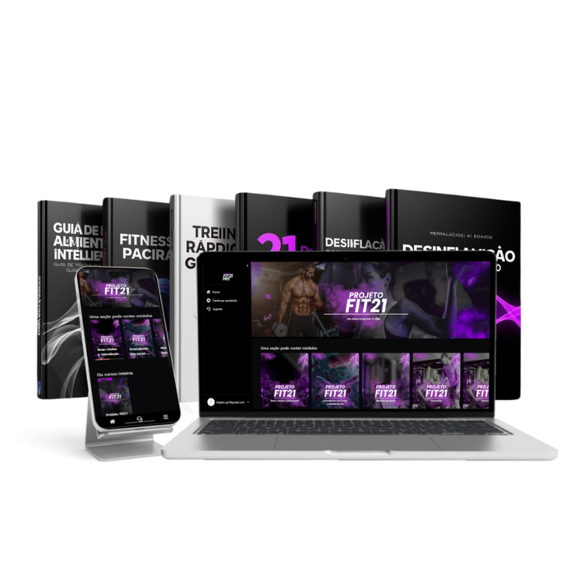 Com o Fit21, você transforma seu corpo em tempo recorde com aulas exclusivas, planilha de treino montada por profissionais, plano alimentar inteligente e e-books premium de apoio, tudo pensado para acelerar seus resultados rumo à sua melhor versão.